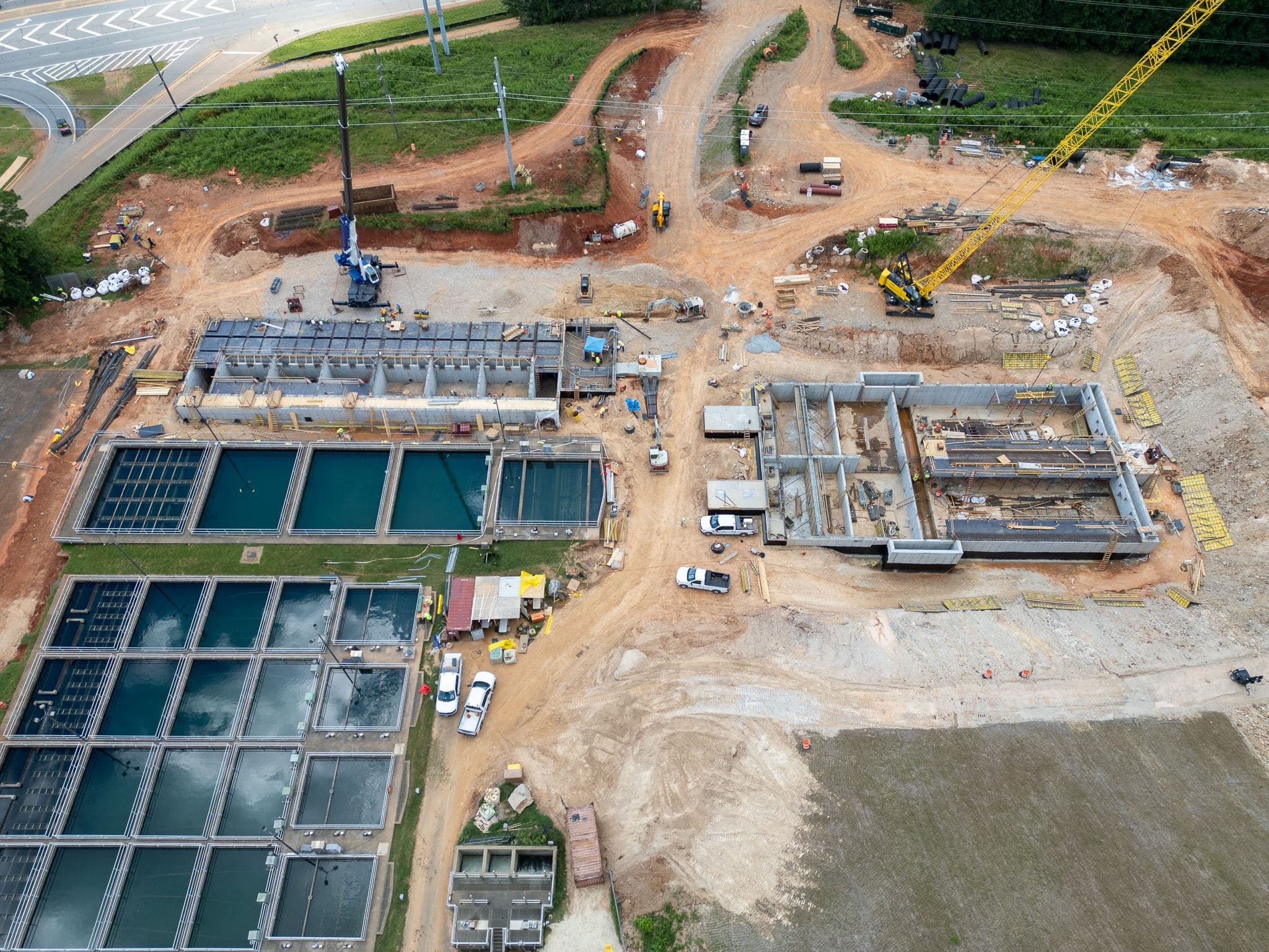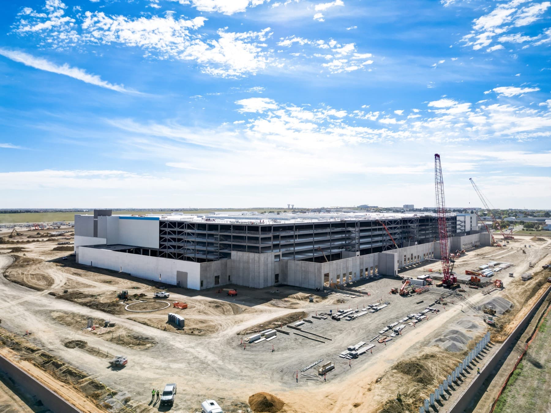 Pads, paving, concrete, yards, and access work tied to the full build schedule.