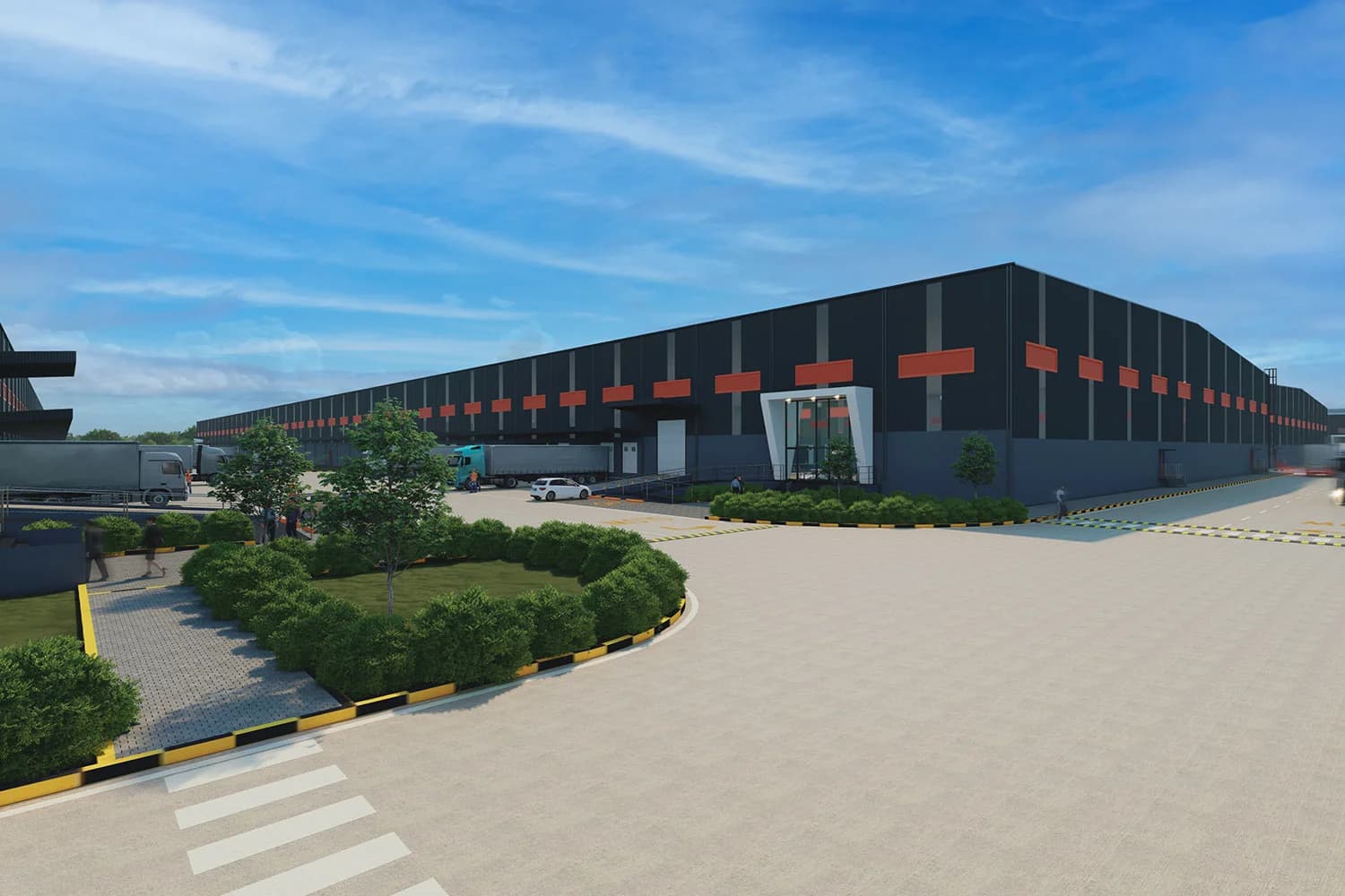 Warehouse, PEMB, logistics, and utility-heavy facilities coordinated for operations.