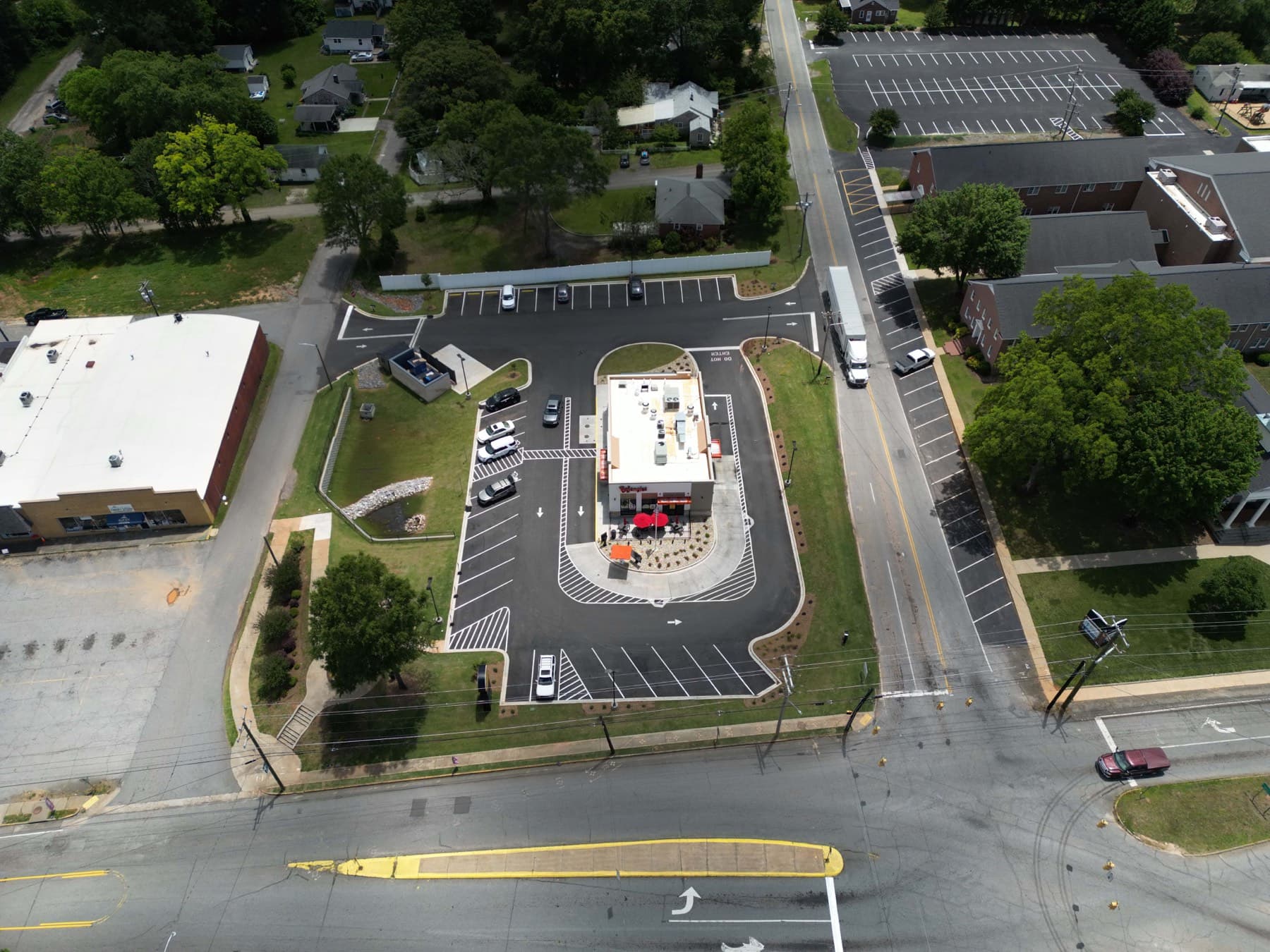 Parking lot construction for commercial and industrial properties that need reliable drainage, circulation, and durable frontage-ready delivery.